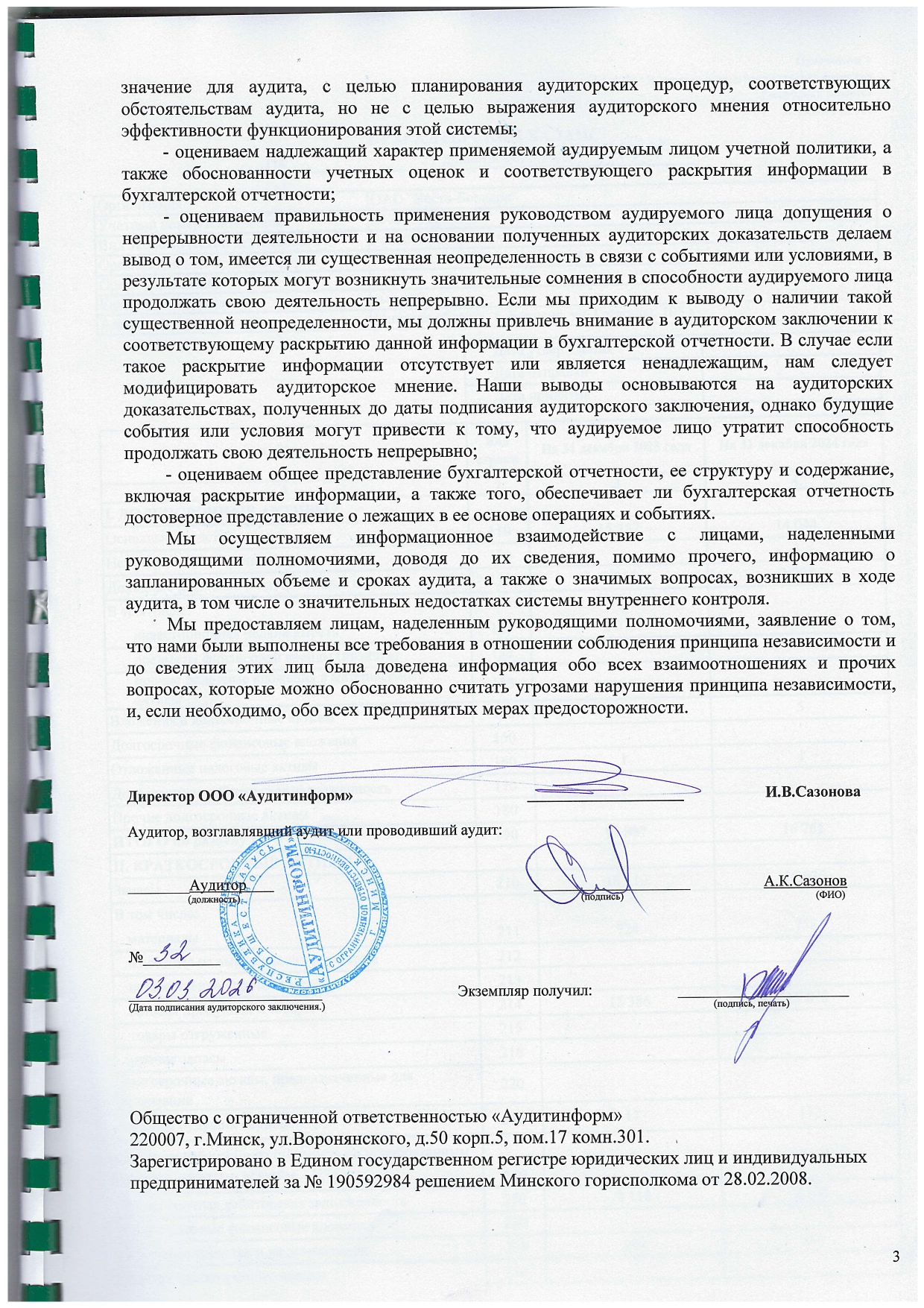 5. Заключение по годовому отчету и балансу Общества.